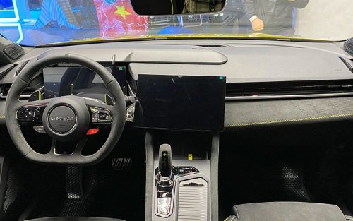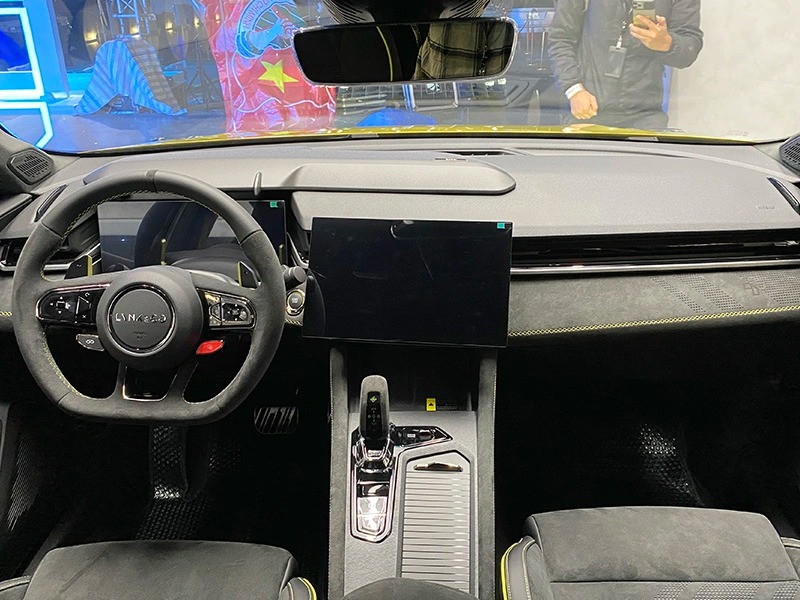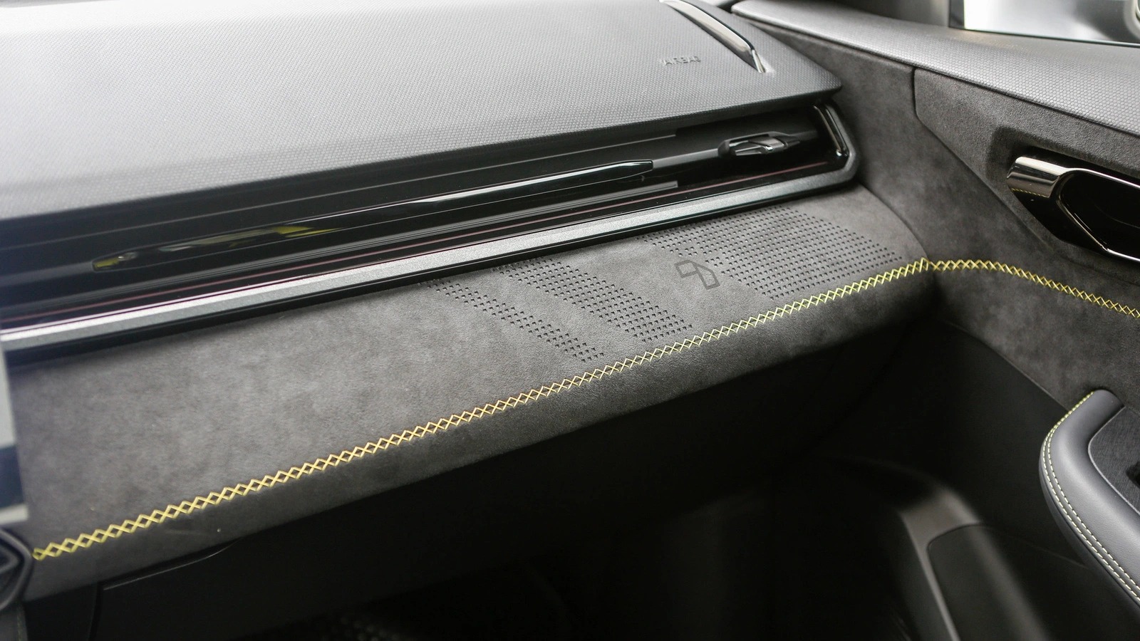 Bảng táp-lô tối giản, hướng về người lái, với màn hình trung tâm giá trí 12,8 inch sắc nét, sử dụng chip Snapdragon 8155 cho trải nghiệm mượt mà. Màn hình này có thể di chuyển lên xuống để cho hành khách trong xe có thể dễ dàng quan sát.
