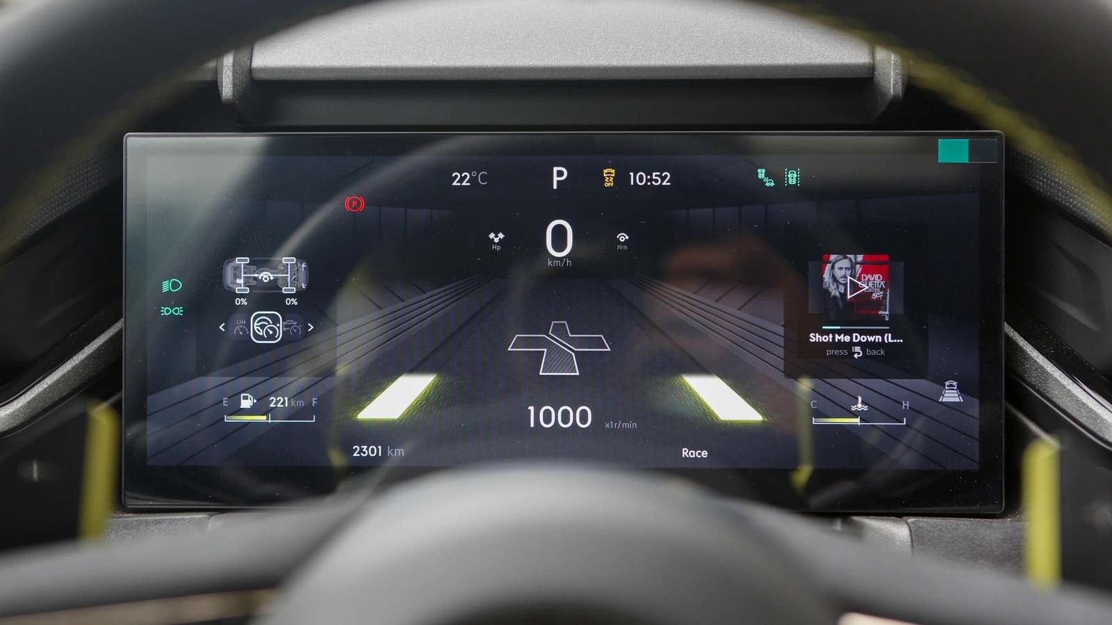 Xe có 5 chế độ lái: Eco, Comfort, Sport, Race, Individual, cho phép tùy chỉnh phản hồi ga, tay lái và âm thanh ống xả.